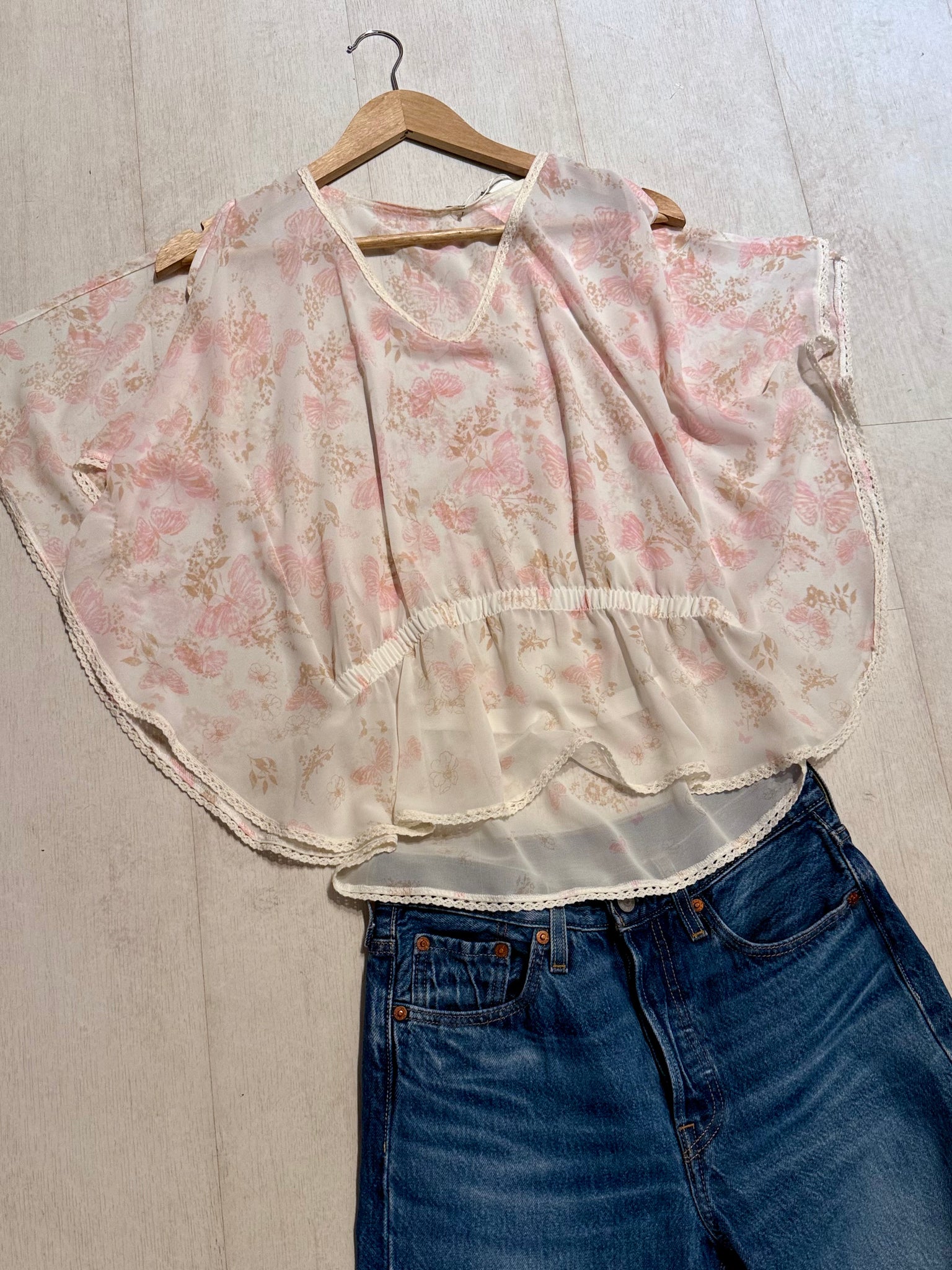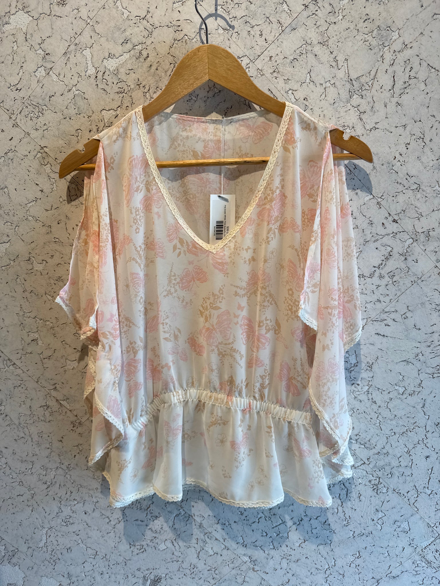 Pre-loved White Pink Butterfly Sheer Top