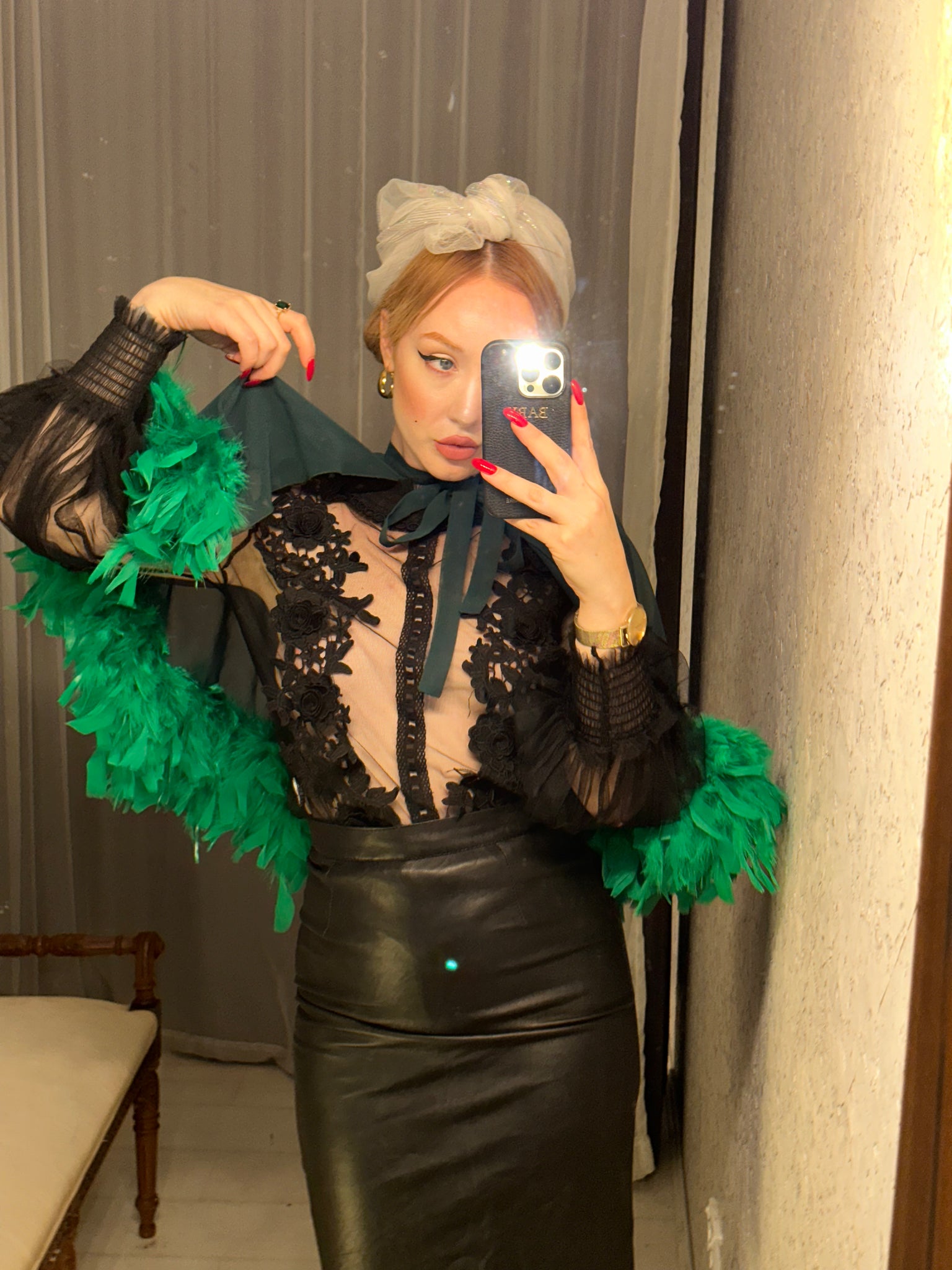 Vintage Green Feather Cape